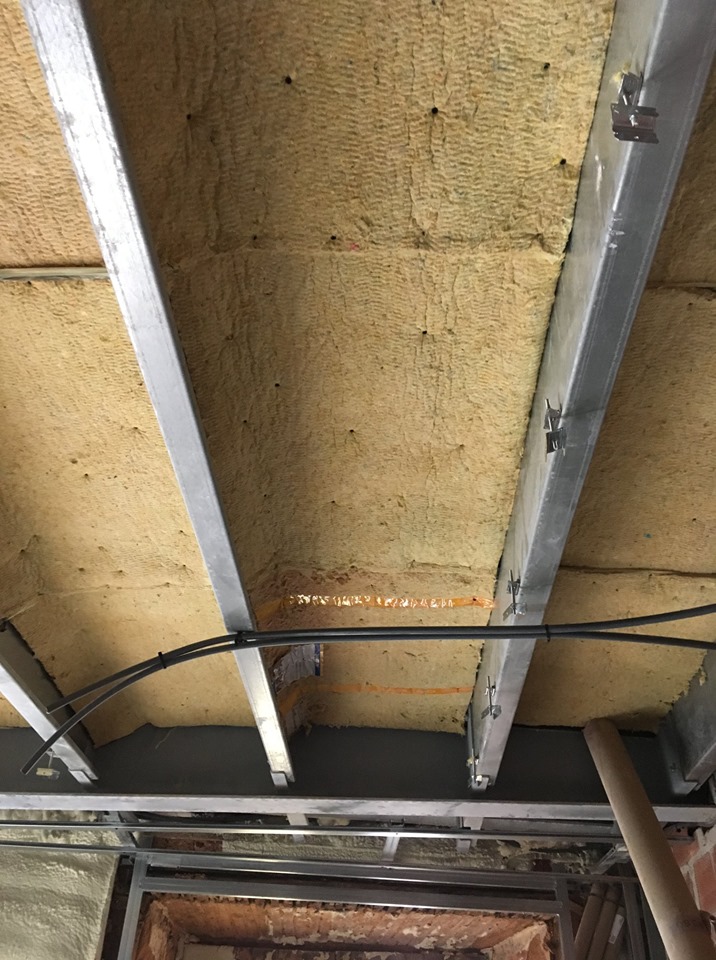 O isolamento térmico e acústico foi materializado pela projecção de poliuretano pelo perímetro interior das fachadas do edifício bem como na separação entre fracções, além de painéis acústicos especiais na separação do piso 0 para o piso 1, e lã-de-rocha na cobertura.
