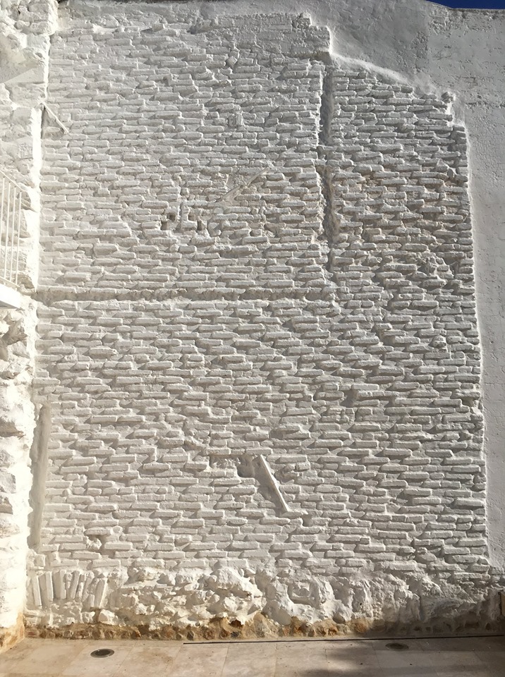 Nas paredes da envolvente desta zona mantiveram-se os vestígios de tijolo de burro.