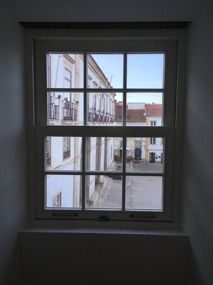 Na área de construção a tardoz de menor volume optou-se por estrutura de betão armado onde se privilegia o espaço de lazer e contemplação sobre o Castelo e Convento de Cristo.