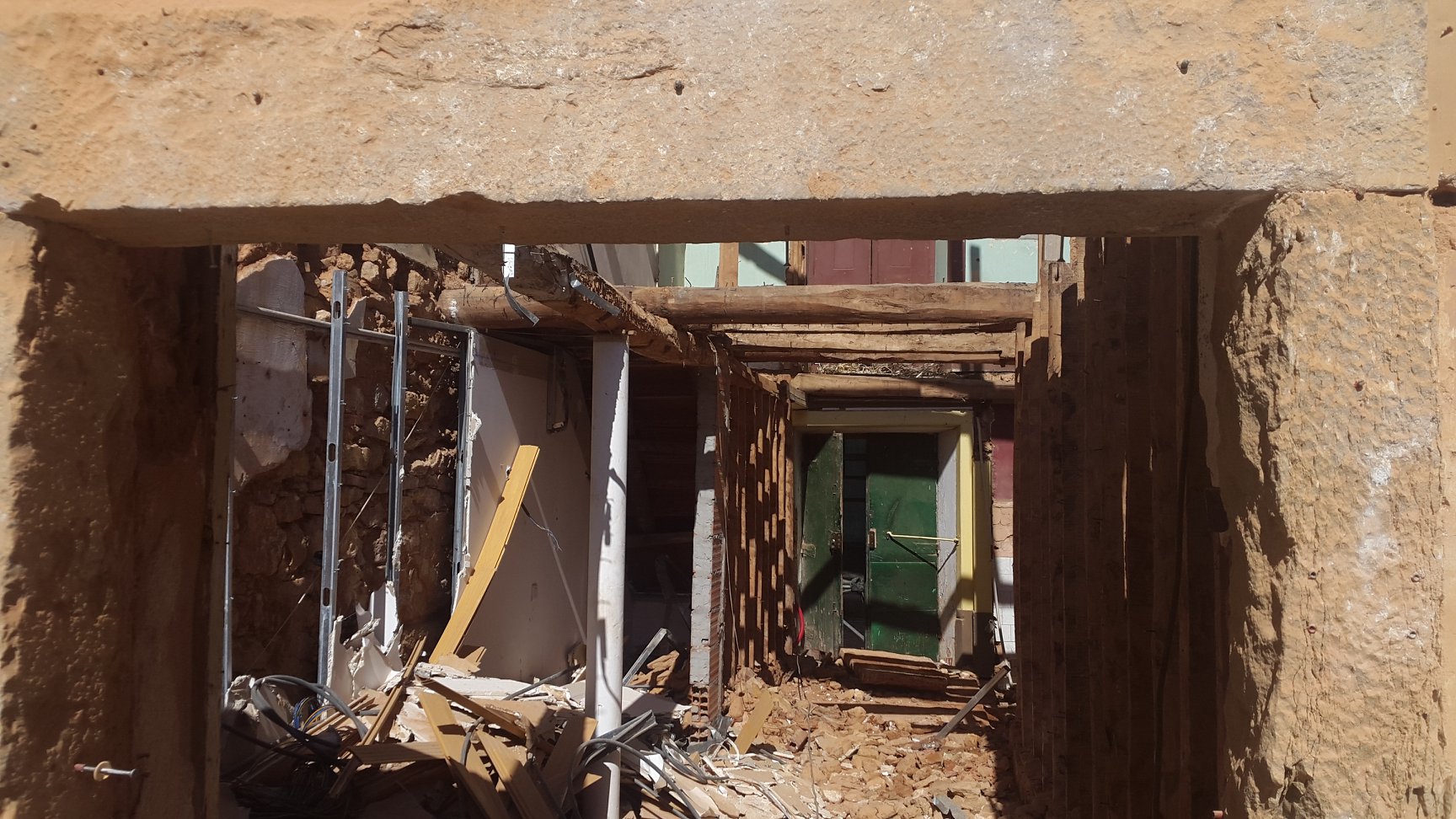 O edifício pré-existente foi construído com as técnicas e materiais correntes à época. Estrutura dos pavimentos e cobertura com barrotes de madeira incrustados nas paredes de pedra do perímetro do edifício e mestras interiores.