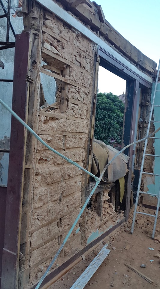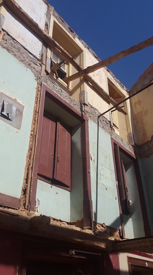 Os vãos existentes nas fachadas e compartimentação foram executados com pórticos de madeira para materializar as ombreiras e vergas, conferindo já alguma resistência.