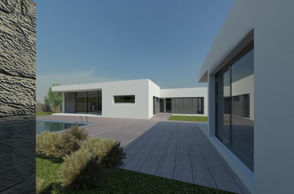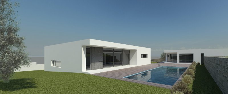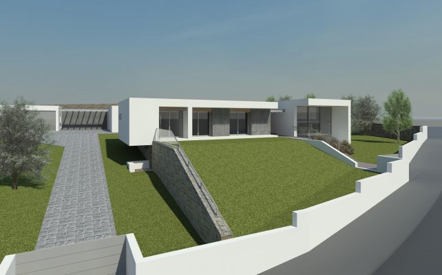 O corpo da garagem e anexo formam um elemento, destacado do restante, procurando uma divisão real de usos, bem como um melhor aproveitamento do terreno. Da articulação destes dois elementos (habitação e anexos), resulta o espaço exterior privilegiado pela privacidade e centralidade onde se situa a piscina.