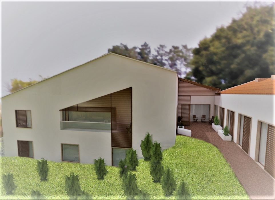 Edifício de acolhimento para idosos localizado fora do perímetro urbano de Leiria onde a serenidade prevalece.