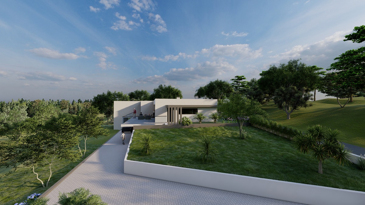 Trata-se de uma casa que aproveita a vista desafogada a sudoeste onde o vidro permite o enquadramento com a paisagem, não descorando uma fachada principal marcante pela sua simplicidade e discrição que confina com a via pública.
