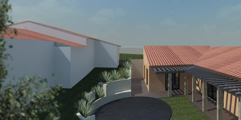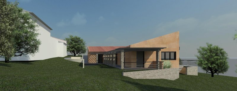 Neste sentido, a Poente foi criado um jardim de inverno com um longo alpendre e uma espécie de anfiteatro virado para o espaço da eira. A nascente, surge um terraço mais amplo, elevado sobre o terreno e virado para a paisagem.